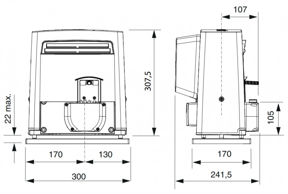 ВНИМАНИЕ: указаны предельные значения ширины и массы ворот, которые обратно пропорциональны друг другу. Для окончательного выбора привода, смотрите инструкцию на привод, раздел "Ограничения в использовании".