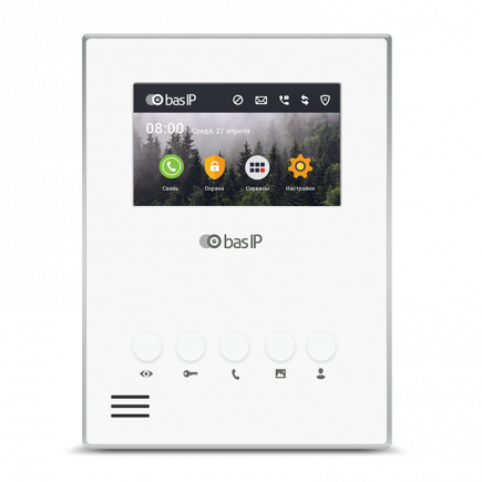 BAS-IP AU-04LAF WHITE Видеодомофон индивидуальный. Wi-Fi: 2,4 ГГц (IEEE 802.11n). Дисплей: 4” TFT, сенсорный емкостный, разрешение 480x272. Операционная система: Linux. Без камеры. С возможностью подключения датчиков сигнализации, аудиоинтерком между дом