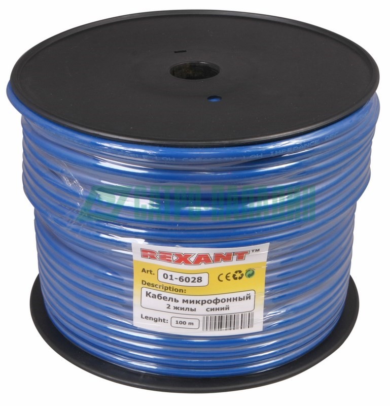 Описание 01-6028 ∙ Кабель микрофонный 2х0,25м м², ø 6,8 мм, синий, 100м, Rexant
