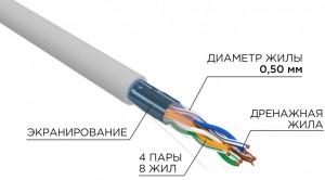 Описание 01-0143-R ∙ Кабель витая пара F/UTP, CAT 5e, PVC, 4PR, 24AWG, INDOOR, SOLID, серый, 305м, РФ Rexant