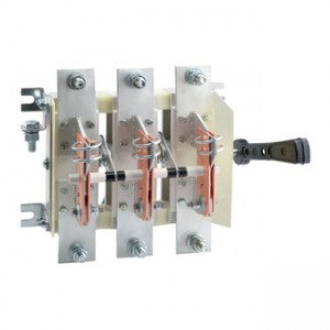 Разъединитель 3 полюсный на номинальный ток 630 А, где установлена несъемная рукоятка, а механическая износостойкость составляет 10000 циклов.