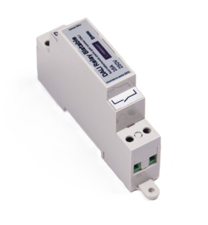 Бистабильное реле (DALI Relay Bistable) обычно используется для управления освещением, когда требуется сохранить последнее состояние освещения после отключения питания. Чтобы свет оставался включенным в комнате после выключения и включения питания, можно использовать это устройство.