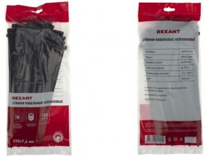 07-0253 ∙ Хомут-стяжка кабельная нейлоновая 250x7,6мм, черная (100 шт/уп) Rexant ∙ кратно 5 упак