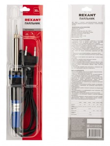 Характеристики Rexant 12-0122 ∙ Паяльник REXANT, долговечное жало, 30 Вт, 230 В, серия "МАСТЕР"