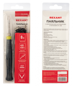 Характеристики Rexant 12-0180 ∙ Паяльник мини REXANT, 5 В/8 Вт, питание через USB