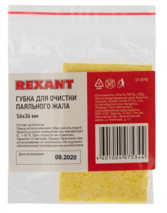 Описание Rexant 12-0193 ∙ Губка для очистки паяльного жала 56x36 мм REXANT ∙ кратно 10 шт