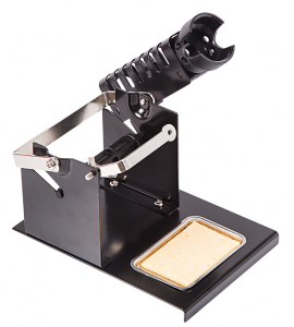 Подставка под паяльник c держателем припоя на катушке (ZD-10S) REXANT предназначена для безопасного хранения паяльника при нагревании, в промежутках между использованием и при охлаждении, а также для удерживания припоя на катушке. Платформа подставки имеет ложемент под губку для очистки жала паяльника от остатков припоя. Губка для очистки жала паяльника поставляется в комплекте. Паяльник легко и удобно помещается в направляющую.