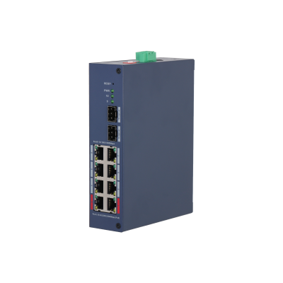 Порты: 8 RJ45 10/100/1000Мбит/с (PoE/PoE+/Hi-PoE/IEEE 802.3bt), 2 SFP 1000Мбит/с (uplink); мощность PoE: порт 1~2 до 90Вт, порты 3~8 до 30Вт, суммарно до 110Вт; PoE watchdog, передача до 250м; питание: 48~57В(DC); грозозащита: до 6кВ; рабочая температура: -30°С~+65°С; IP30, IK06; монтаж на DIN-рейку