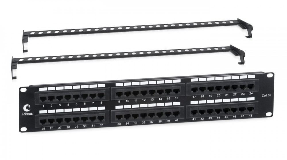 Cabeus PL-48-Cat.6a-Dual IDC Патч-панель 19" (2U), 48 портов RJ-45, категория 6a, Dual IDC, с задним кабельным организатором
