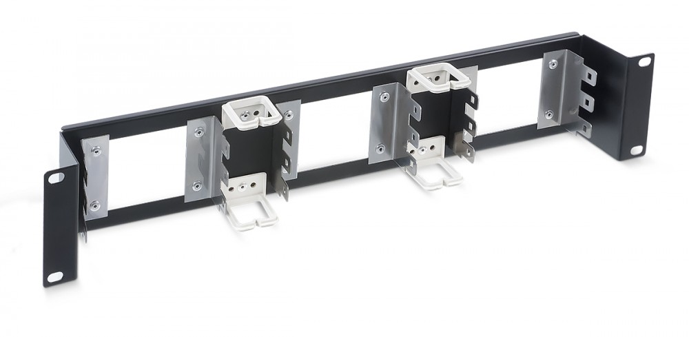Рама 19” с монтажными хомутами, предназначена для установки на неё 9-ти плинтов типа KRONE. Используется для установки в шкафы и стойки стандарта 19”.