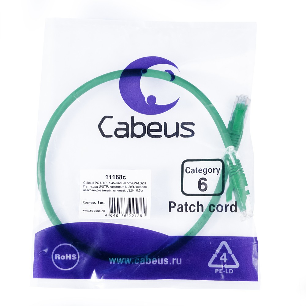 Описание Cabeus PC-UTP-RJ45-Cat.6-0.5m-GN-LSZH (11168c)