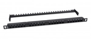 Cabeus PLHD-24-Cat.5e-Dual-180-0,5U Патч-панель высокой плотности 19" (0,5U), 24 порта RJ-45, категория 5e, Dual IDC,180 градусов, с задним кабельным организатором