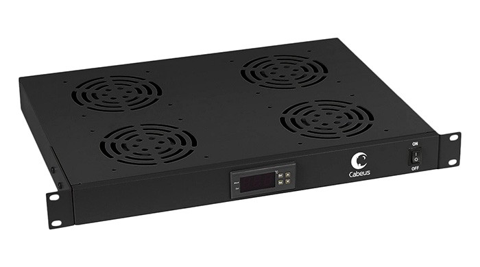 Cabeus JG03t-BK Модуль вентиляторный 19", 4 вентилятора, с цифровым термодатчиком, цвет черный (RAL 9004)