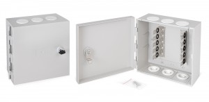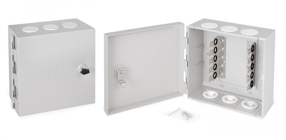 Коробка распределительная (пластик) предназначена для организации телефонного узла коммутации с ограниченным доступом. Позволяет установить 5 плинтов типа KRONE. Крепление распределительной коробки производится на стену. Крепление плинтов производится на монтажный хомут внутри коробки. Имеет 6 кабельных вводов, снабженные резиновыми манжетами. Диаметр кабельных вводов: 27 мм. Закрывается на ключ. Возможна установка кассеты для грозоразрядников.