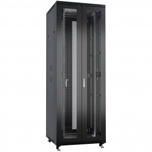 Cabeus ND-05C-42U80/120-BK Шкаф монтажный телекоммуникационный 19" напольный для распределительного и серверного оборудования 42U 800x1200x2055mm (ШхГхВ) передняя и задняя двойные перфорированные двери, ручки с замком, цвет черный (RAL 9004)