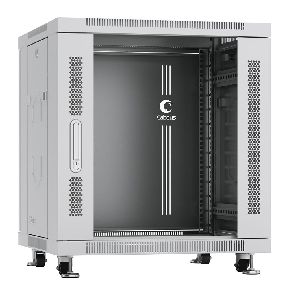 Cabeus SH-05C-12U60/80 Шкаф телекоммуникационный 19" напольный 12U 600x800x730mm (ШхГхВ) передняя стеклянная и задняя сплошная металлическая двери, ручка с замком, цвет серый (RAL 7035)