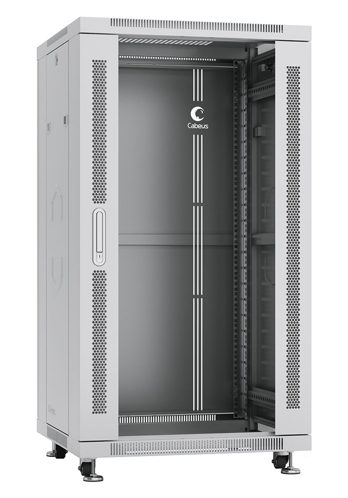 Cabeus SH-05C-22U60/60 Шкаф монтажный телекоммуникационный 19" напольный для распределительного и серверного оборудования 22U 600x600x1166mm(ШхГхВ) передняя стеклянная и задняя сплошная металлическая двери, ручка с замком, цвет серый (RAL 7035)