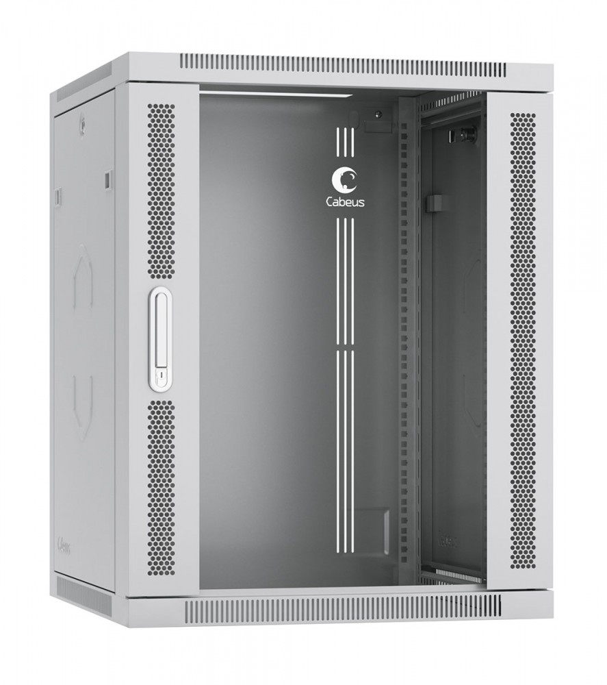 Cabeus SH-05F-15U60/35 Шкаф телекоммуникационный настенный 19" 15U 600x350x769mm (ШхГхВ) дверь стекло, цвет серый (RAL 7035)