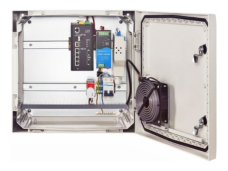 NSBox-4480 (CX11F04F) NSGate Узел Доступа: шкаф NSC-4040F поликарбонат, с вентилятором, с ODF; ИП 48VDC-360W; NIS-3500-3412PGE коммутатор 8 портов TP/ 1G 802.3at PoE | 2 SFP/ 1G + 2 1G/ 2.5G SFP uplink