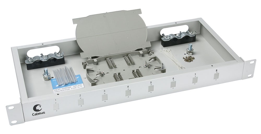 Cabeus FO-19-8SC Кросс бокс оптический 19" на 8 SC (LC duplex) со сплайс-кассетой и КДЗС (без пигтейлов и проходных адаптеров)
