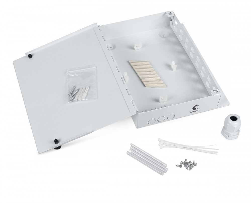 Cabeus JJT-16-SC Бокс оптический настенный на 16 SC (LC duplex) со сплайс-кассетой и КДЗС (без пигтейлов и проходных адаптеров)