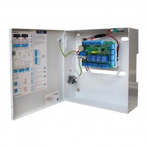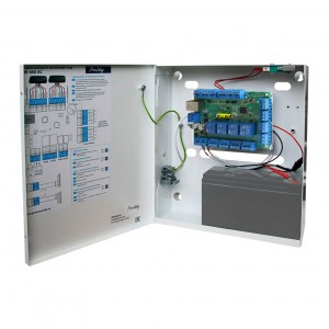 Сетевой IP-контроллер доступа в металлическом корпусе со встроенным БП, под АКБ 7Ач. Память - 32000 идентификаторов, журнал событий - 47000. Используется для построения 2 односторонних точек доступа или одной двусторонней.