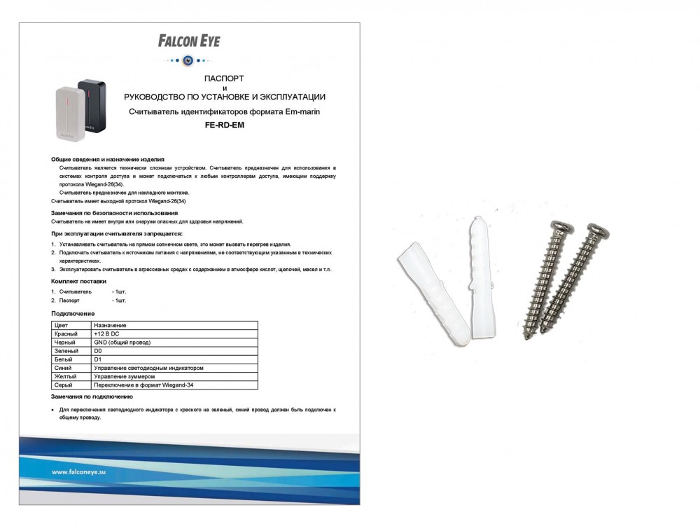 FE-RD-EM бесконтактный считыватель карт формата EM-Marin (125кГц). Предназначен для работы в составе систем контроля и управления доступом и совместим с любыми контроллерами, поддерживающими протокол Wiegand-26 или 34.