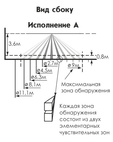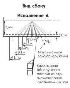 - Угол зоны обнаружения в горизонтальной плоскости: 360°