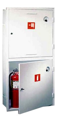 ШПК-320-12 ВОБ (Ш-ПК-О-003Н-12) Шкаф для пожарного крана на два пожарных рукава и два огнетушителя, встроенный открытый белый, глубина 300 мм