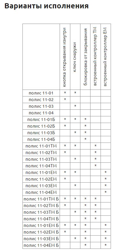 ВНИМАНИЕ: на сайте приведена общая фотография замка Полис серии 11. Но в зависимости от исполнения изделие может иметь или не иметь кнопку, цилиндр, встроенный контроллер (см. в описании и паспорте изделия)
