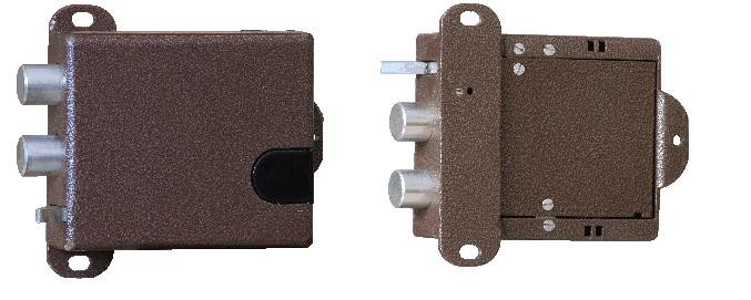 Полис 11-02 Замок электромеханический накладной, универсальный. Механическая кнопка открытия замка, без цилиндра.12В, 0,8А, два ригеля, -40...+60С, 110х92х30мм.